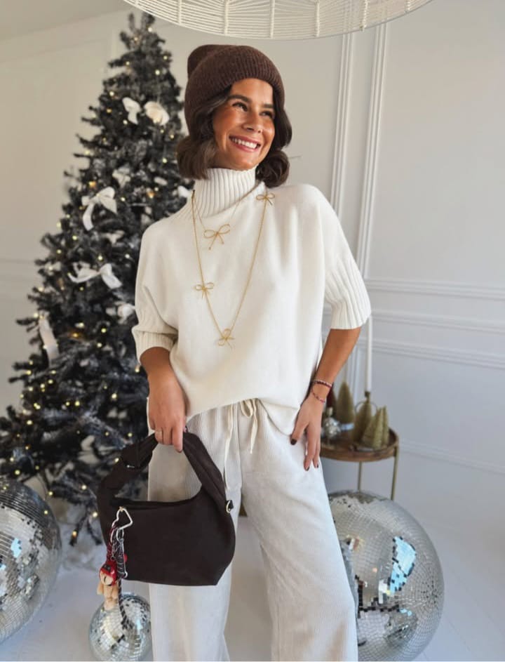 Questa dolcevita oversize è il capo perfetto per un look casual-chic. Caratterizzato da una vestibilità morbida e dalle maniche corte a coste. Versatile e facile da abbinare.